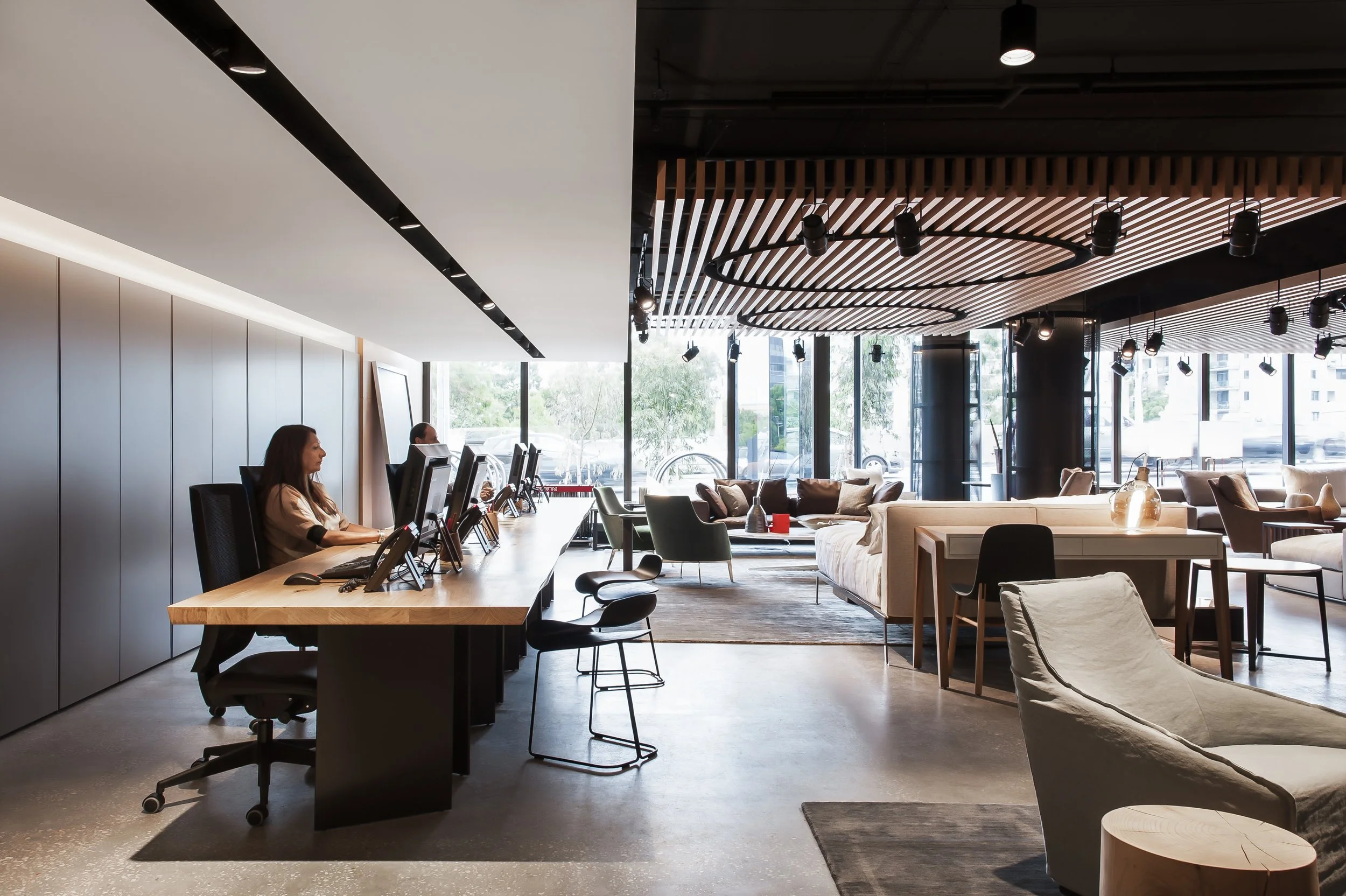The articulation of timber elements reflects the handcrafted nature of furniture manufacturing that is so valued at Fanuli. These elements come together with precision and curation to form devices that assist with the delineation of the various zones.